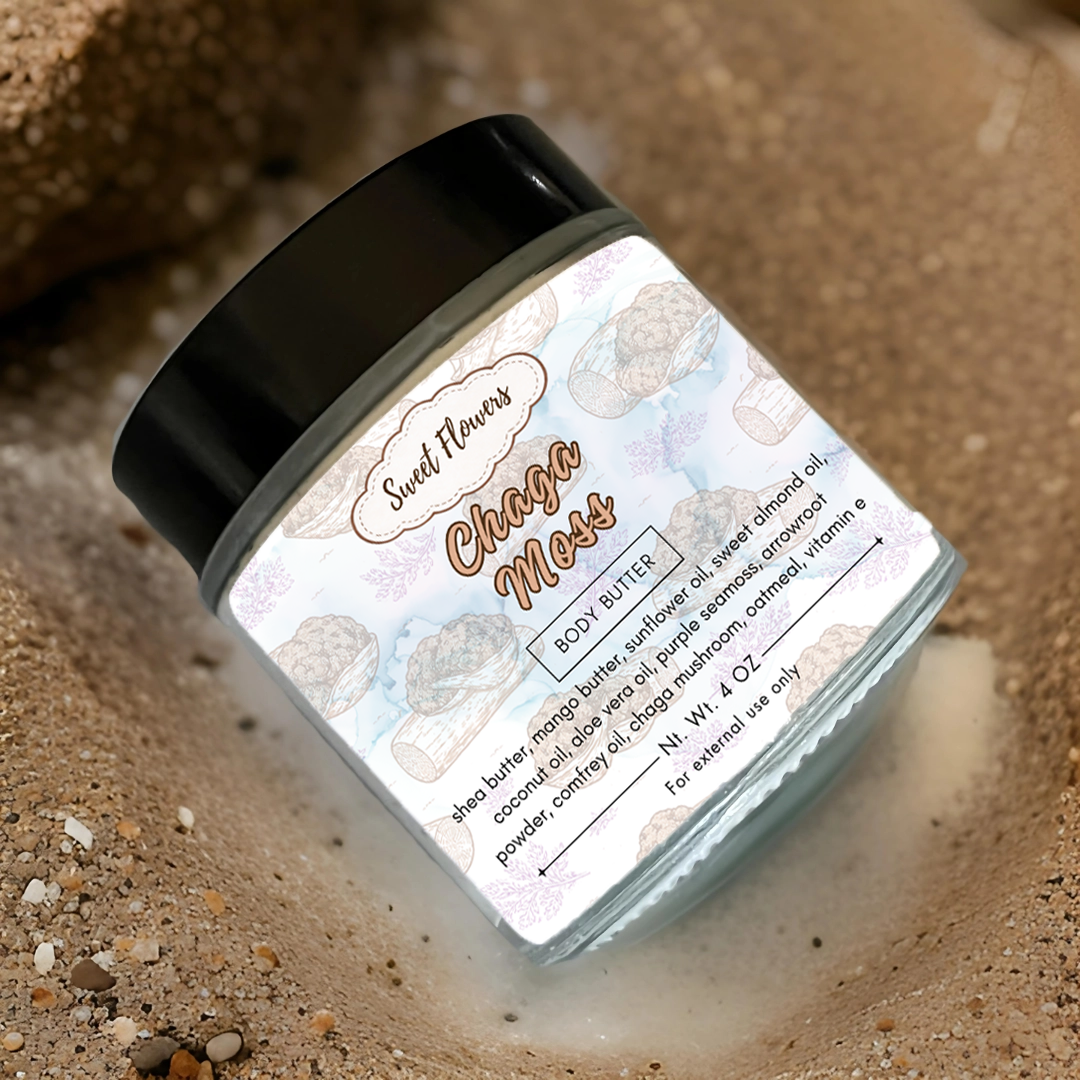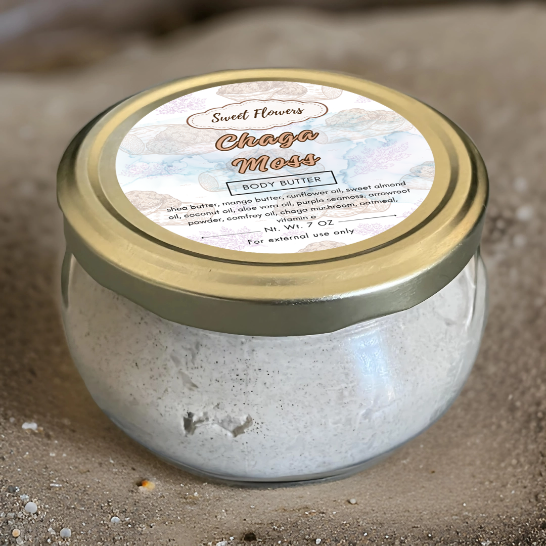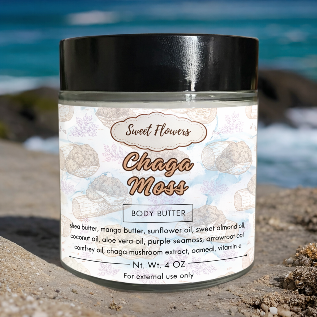 Experience the power of nature with Chaga Moss Body Butter, a deeply nourishing blend infused with the skin-rejuvenating benefits of chaga mushroom and purple sea moss. This luxurious body butter melts effortlessly into your skin, delivering intense hydration while promoting a healthy, radiant glow.