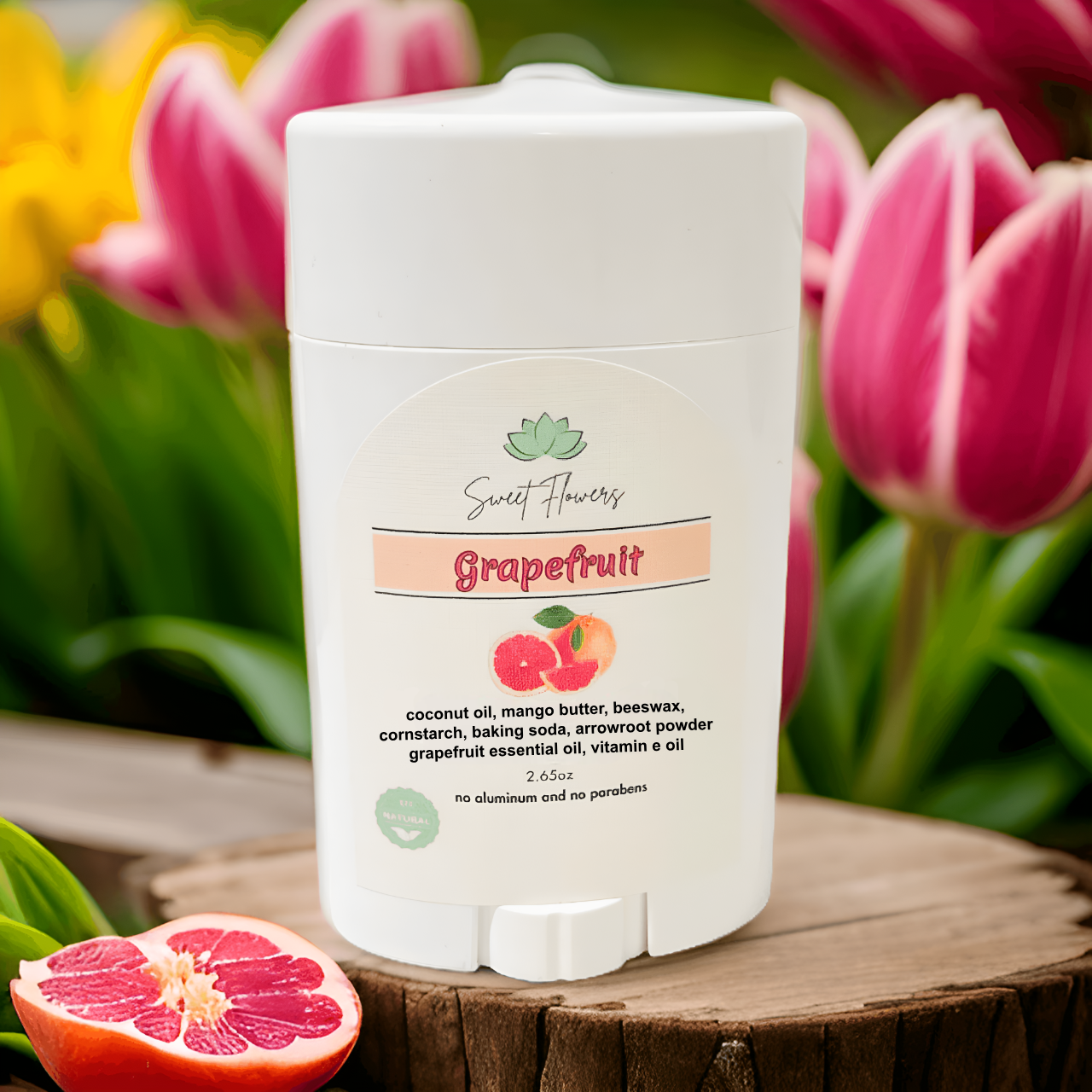Fresh, Bright, and Energizing! Our Grapefruit Natural Deodorant is designed to awaken your senses and keep you feeling fresh all day long. With the refreshing citrus scent of grapefruit, this deodorant is crafted to provide powerful odor protection while nourishing and soothing your skin.