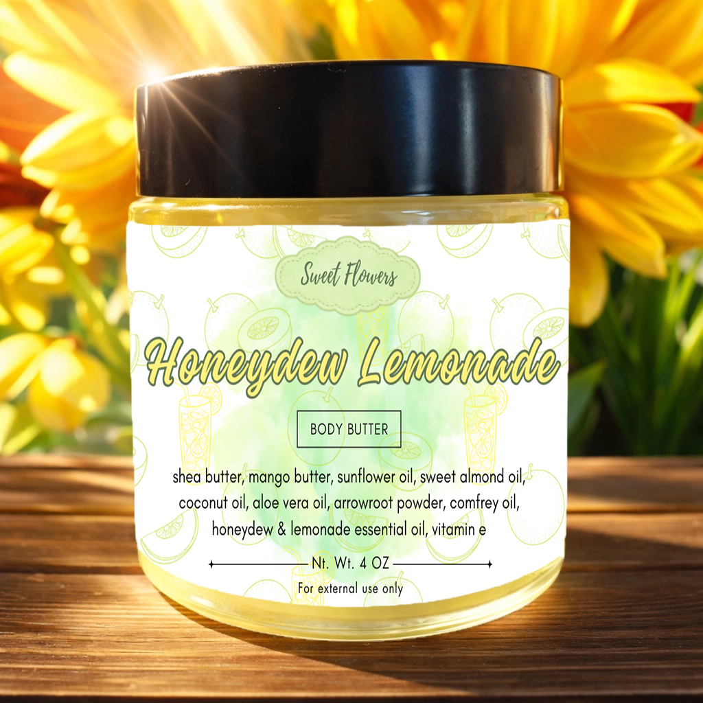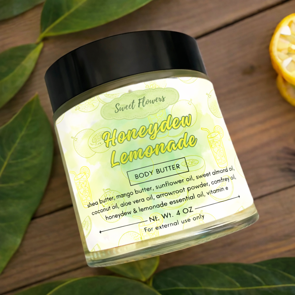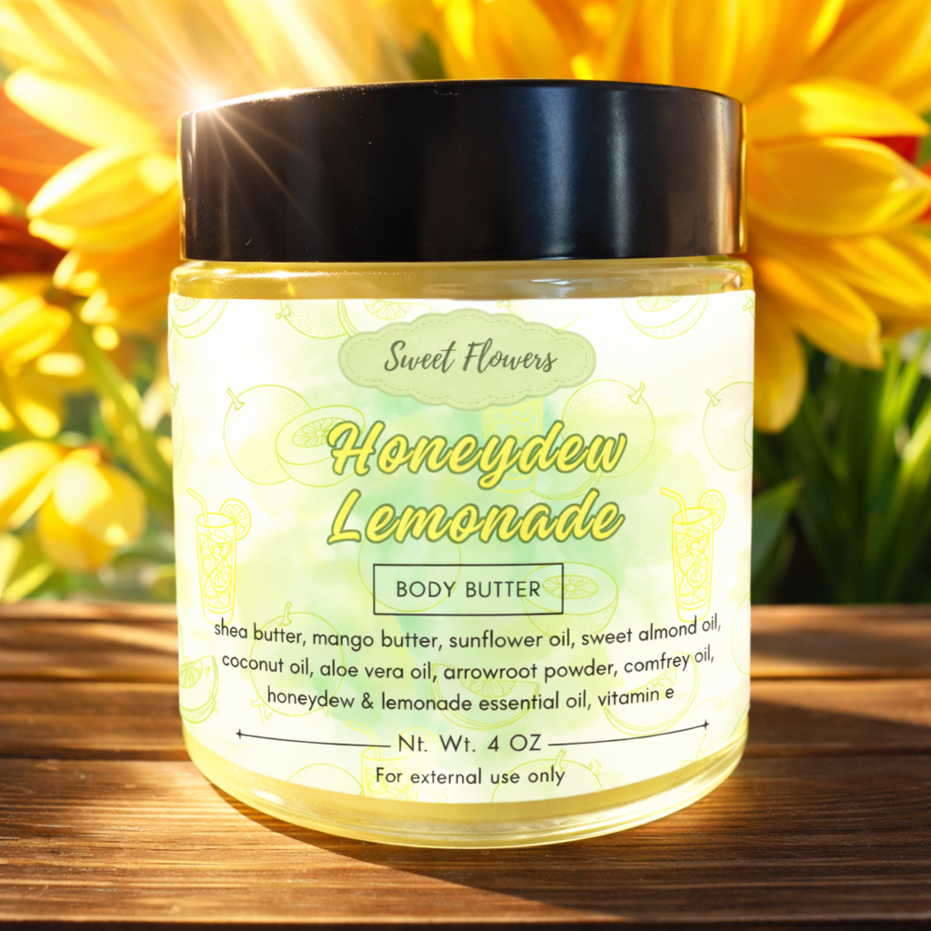 Refresh and hydrate your skin with Honeydew Lemonade Body Butter, a luscious blend of rich butters and nourishing oils infused with the sweet and citrusy aroma of honeydew and lemonade. This indulgent formula melts effortlessly into your skin, leaving it soft, radiant, and lightly kissed with a refreshing fruity scent.