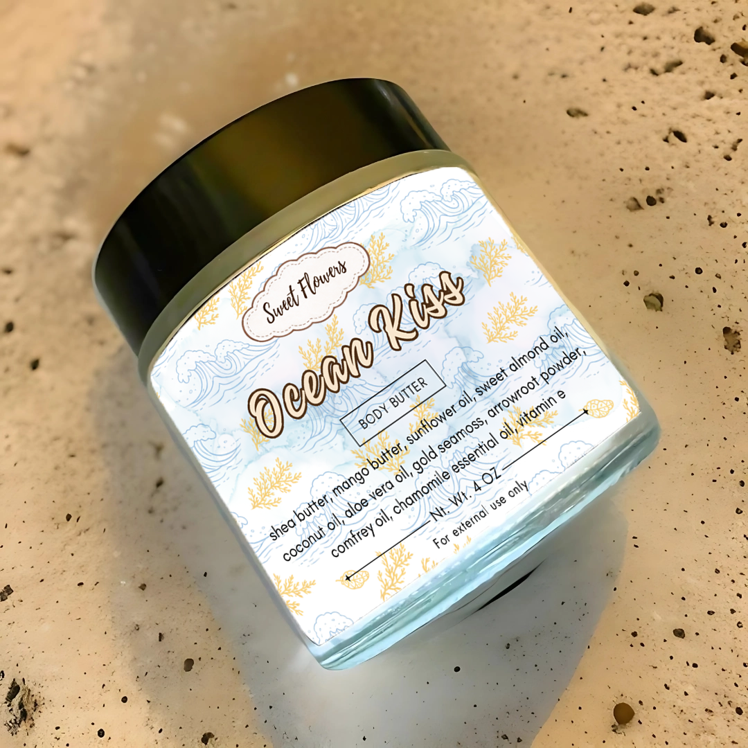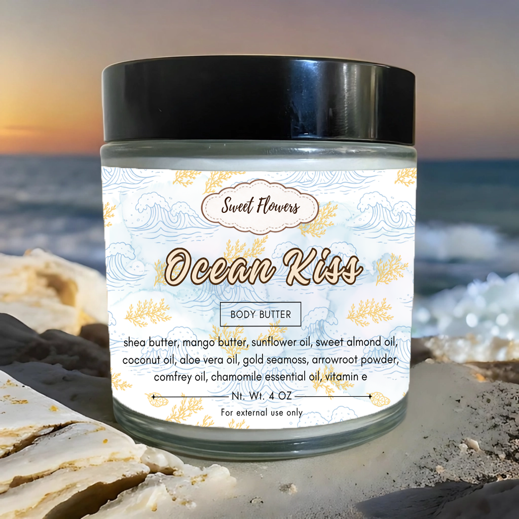 Let your skin soak in the gentle embrace of the sea with Ocean Kiss Body Butter, a deeply hydrating blend inspired by the soothing power of the ocean. Infused with golden sea moss, this luxurious formula nourishes your skin with essential minerals, leaving it soft, supple, and radiant.